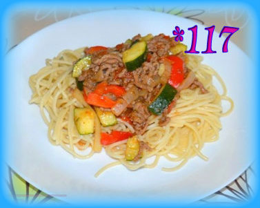 Spaghetti z mięsem i warzywami
