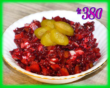 Sałatka z buraczków, ogórków kiszonych i cebulki