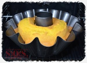 Jajka ubij z cukrem na puszystą masę (najlepiej mikserem lub w malakserze). W misce wymieszaj obie mąki i proszek do pieczenia, następnie stopniowo dodawaj do ubijanych jajek. Na końcu dodaj majonez i aromat cytrynowy. Całość dokładnie wymieszaj – przelej do formy wysmarowanej tłuszczem. Piecz ok. 35 minut w temp. 180 stopni.