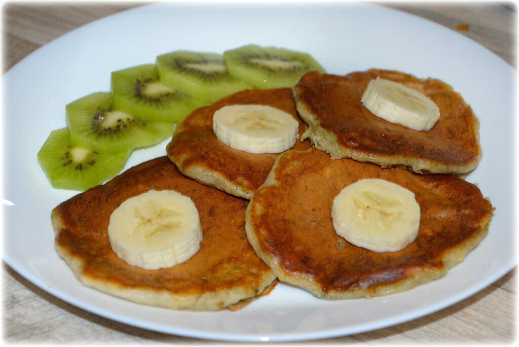 Pancakes, czyli naleśniki amerykańskie – te są w wersji na słodko z dodatkiem bananów😉 Idealne na śniadanie, obiad i kolację. Ja je podaję z owocami i płynnym miodem, ale świetnie będą smakować też z dżemem lub syropem klonowym. Można zrobić wersję z mąką pszenną lub bezglutenową.