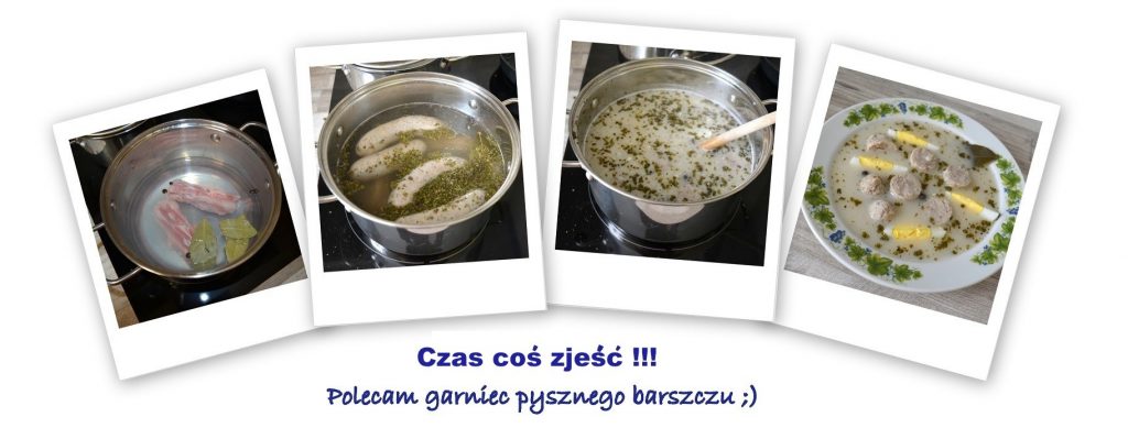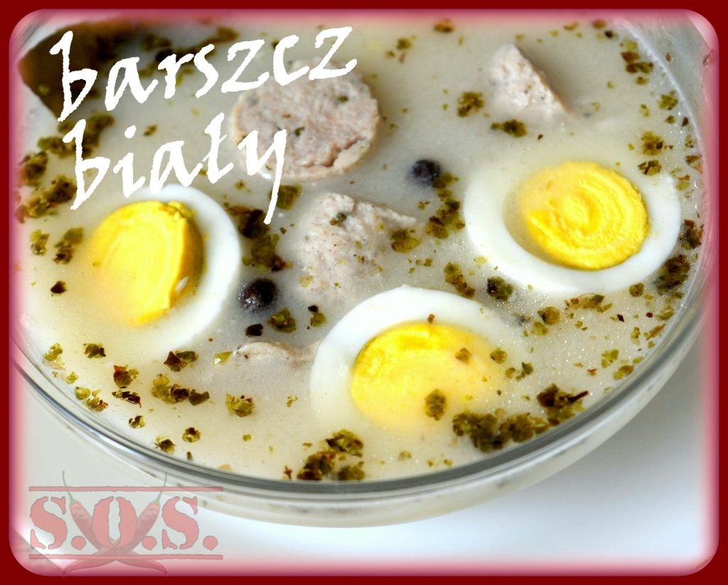 Wiele osób ”barszczem białym” nazywa ”żurek”, z czym się całkowicie nie zgadzam. Dla mnie jest to zabielana zupa (oczywiście bez zakwasu), której podstawą jest aromatyczny mięsny wywar. Obowiązkowo podawana z kawałkami białej kiełbasy i jajkiem… pycha🙂 Jak dotąd najlepszy barszcz zdarza mi się jadać u przyszłej teściowej. Jest tak smaczna, że trudno mi poprzestać tylko na jednym talerzu? Jeśli jeszcze nigdy nie robiliście takiej zupy, gorąco Was do tego zachęcam. Jestem pewna, że od razu ją polubicie🙂