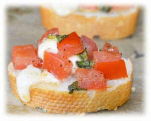 Bruschetta, czyli taka kanapka na ciepło rodem z Włoch😉 Jest smaczna, szybka i łatwa do zrobienia, dlatego doskonale nadaje się nie tylko na domowe śniadanie lub kolację, ale też śmiało można ją podawać gościom na imprezach😉 By bruschetta wyszła idealnie, należy użyć wyłącznie twardego miąższu pomidorów (bez gniazda nasiennego i soku). Bazylię można dodać na dwa sposoby, zależnie od tego, jak lubisz – przed pieczeniem wymieszać z pomidorami i serem lub po upieczeniu posypać bruschettę świeżymi posiekanymi listkami. Podane samodzielnie stanowią świetną przekąskę, jak również mogą być dodatkiem do sałatek oraz zup-kremów.