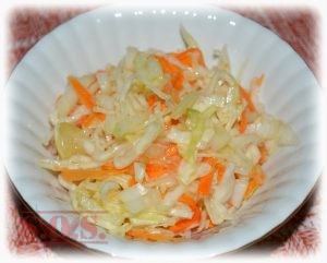 Surówka ze świeżej kapusty, która smakiem bardzo przypomina tę z chińskich knajpek🙂 Świetnie pasuje nie tylko do dań azjatyckich, ale też do mięs i dań obiadowych (np. placków, krokietów, klusek). Do jej przygotowania wystarczą kapusta, marchew i zalewa, jednak zyskuje na smaku przez dodatek cebuli i czosnku.