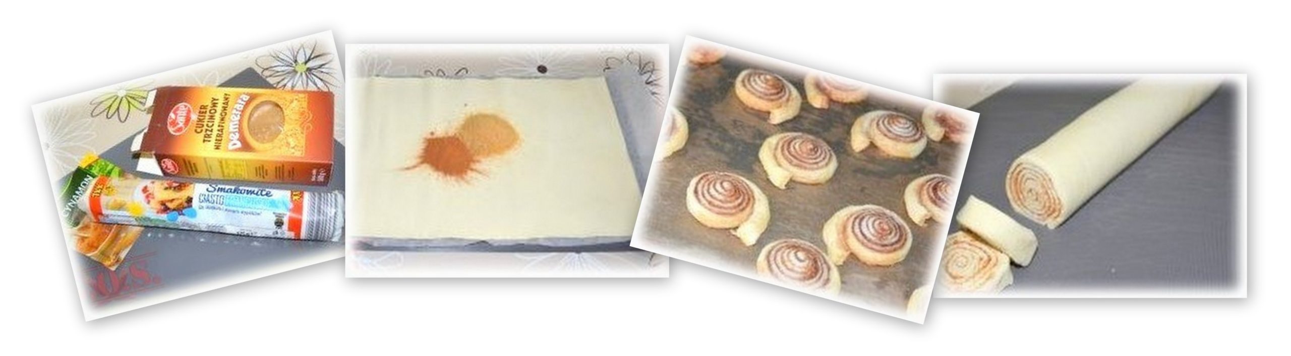 Ciasto francuskie rozwiń, posyp cukrem oraz cynamonem. Przemieszaj suchymi palcami i rozprowadź mieszankę po całej powierzchni. Ciasno zwiń ciasto w rulon, a następnie pokrój w plastry grubości ok. 1 cm. Układaj je na blaszce wyłożonej papierem do pieczenia w odstępach ok. 2 cm (w czasie pieczenia urosną). Piecz ok. 15 minut w temp 180 stopni.