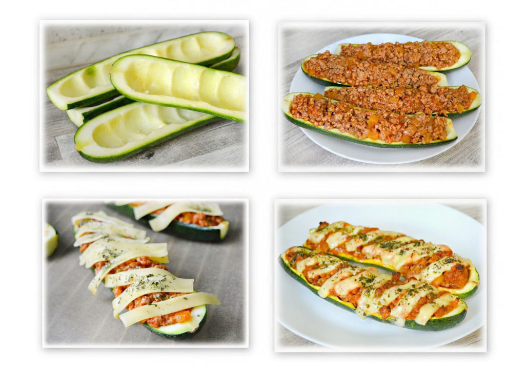 Na patelni rozgrzej olej i najpierw podsmaż drobno posiekaną cebulę, a po chwili dodaj też mięso i paprykę pokrojoną w kostkę. Pod koniec smażenia dodaj koncentrat pomidorowy, pomidory z puszki i czosnek przeciśnięty przez praskę. Dopraw do smaku solą i pieprzem. Cukinię umyj, przekrój wzdłuż na pół, a następnie wydrąż środek używając łyżeczki. Gotowym farszem napełniaj cukinie, na wierzchu ułóż trochę żółtego sera (tartego lub w plasterkach) i wstaw do nagrzanego piekarnika. Piecz ok 30-40 min w temperaturze 200 stopni.