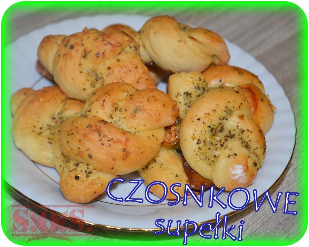 Uwielbiam czosnek! To warzywo, które bez skrupułów nadużywam w kuchni🙂 Pod natchnieniem czosnkowych supełków z knajpki stworzyłam ich moją domową wersję. Najsmaczniejsze są jeszcze cieplutkie aromatyczne zaraz po upieczeniu, najlepiej podane z jakimś dobrym dipem (polecam przepis na słodki sos chili lub dip czosnkowy). Mniam!🙂 To pyszna sycąca przekąska – idealna do piwa, na imprezę, na piknik lub nawet jako dodatek do barszczyku. Polecam!🙂
