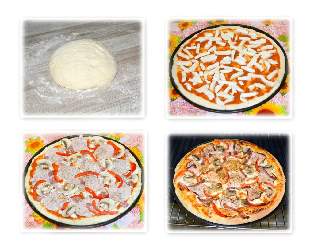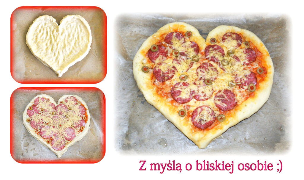 Z tego ciasta wyjdzie jedna duża pizza (o średnicy 35-40 cm i grubości 1-1,5 cm) lub dwie mniejsze pizze.