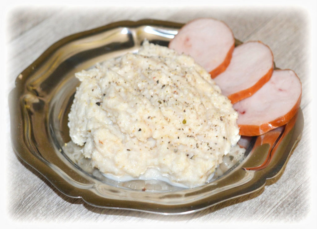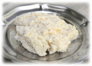 Chrzan obierz i utrzyj na tarce o najdrobniejszych oczkach. Do utartego chrzanu dodaj sól, cukier i ocet – zalej wrzątkiem (chrzanu zrobi się dwa razy więcej).
