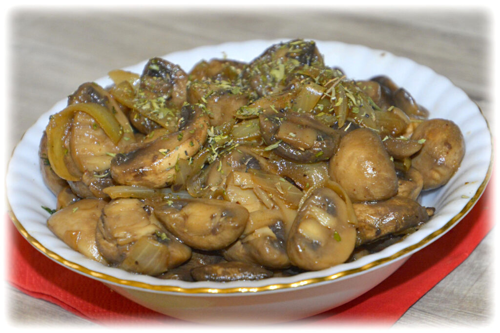 Smaczny i prosty sposób na przygotowanie pieczarek😉 Można je zjeść z pieczywem lub podać do obiadu. Są uniwersalnym dodatkiem – pasują do ryb, mięs i dań wegetariańskich. Z powodzeniem zastąpią surówkę lub sałatkę obiadową🙂