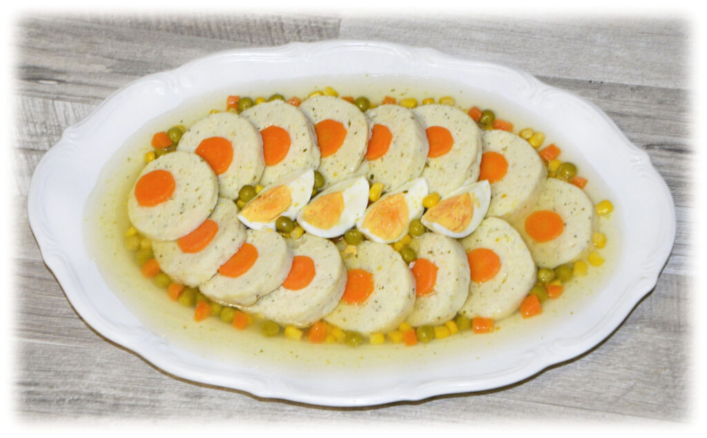 To danie bardzo ładnie prezentuje się na stole😉 Doskonale sprawdzi się na rodzinnych imprezach lub wigilijnej kolacji. Samą galantynę można podać do pieczywa jak wędlinę, na przekąskę z zimnym sosem czosnkowym lub na obiad z ciepłym sosem i surówką👍
