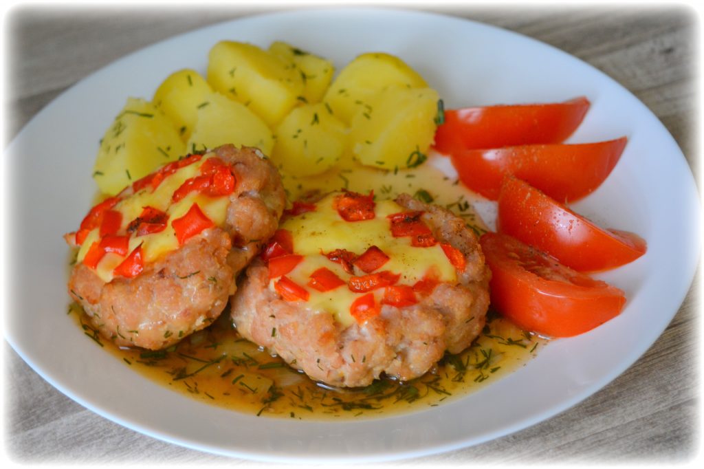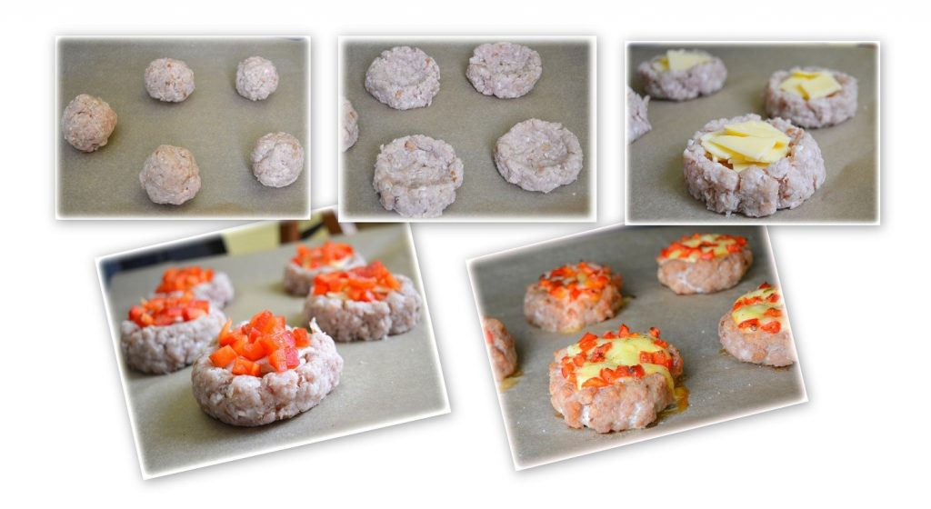 Mięso przełóż do miski i połącz z odciśniętą bułką, jajkiem, czosnkiem przeciśniętym przez praskę, bułką tartą oraz przyprawami. Całość dokładnie wymieszaj (najlepiej dłonią). Blachę do pieczenia wyłóż papierem. Z przygotowanego mięsa formuj kulki (takie, jak na klasyczne kotlety mielone), rozłóż je na blasze i formuj z nich gniazda przy pomocy dłoni. W każde wgłębienie włóż łyżeczkę sosu chili, pół plasterka sera, a na wierzchu pokrojoną paprykę. Posyp solą i pieprzem. Gotowe gniazdka wstaw do rozgrzanego piekarnika – piecz 30 minut w temp. 200 stopni.