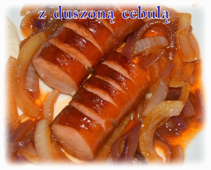 Jeśli kiełbasa jest w długiej lasce, pokrój ją na krótsze części. Ponacinaj i obsmaż na oleju. Zdejmij z patelni i na ten sam tłuszcz wrzuć cebulę pokrojoną w piórka. Smaż, aż się zeszkli, a następnie podlej wodą, dodaj keczup i przyprawy. Włóż z powrotem podsmażoną wcześniej kiełbasę i całość duś jeszcze przez około 5-10 minut pod przykryciem.