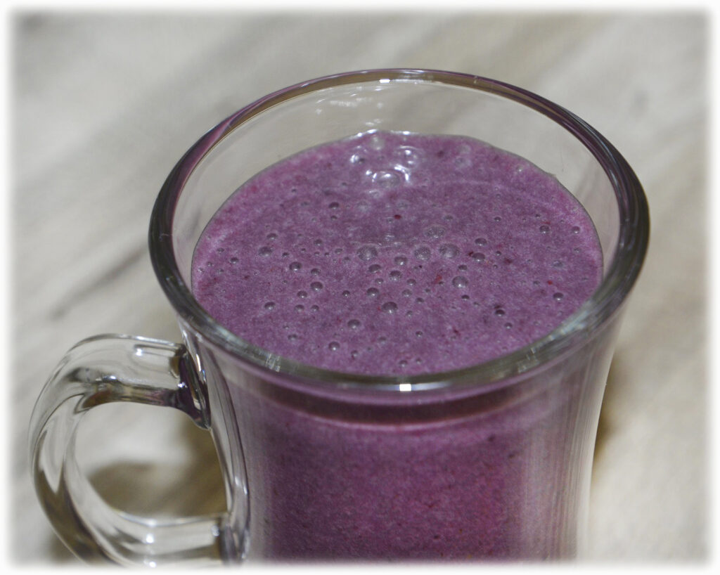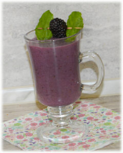 Pyszny witaminowy napój z bananem i jeżynami😉 Świetny do śniadania, na deser oraz by zaspokoić mały głód. Będzie jeszcze zdrowszy, jeśli zamiast cukru, dodasz miód lub syrop z agawy.
