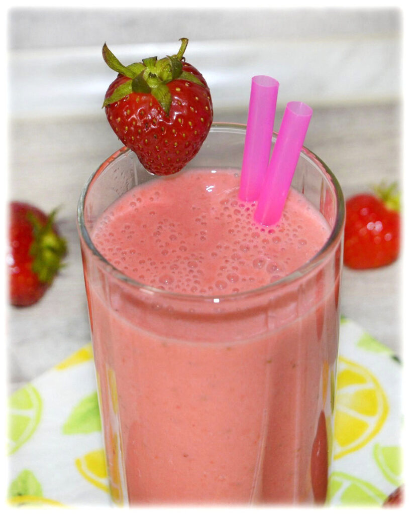 Pyszny koktajl z truskawkami i jogurtem naturalnym🙂 Schłodzony lub z dodatkiem kostek lodu może wspaniale orzeźwić w ciepłe letnie dni. Do koktajlu warto dodać również inne owoce, np. maliny, jagody, wiśnie, poziomki, banany, arbuza.