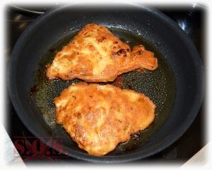 Jeśli zamiast piersi kurczaka, masz sznycle drobiowe, nie musisz ich rozbijać tłuczkiem – powinny być wystarczająco cienkie🙂