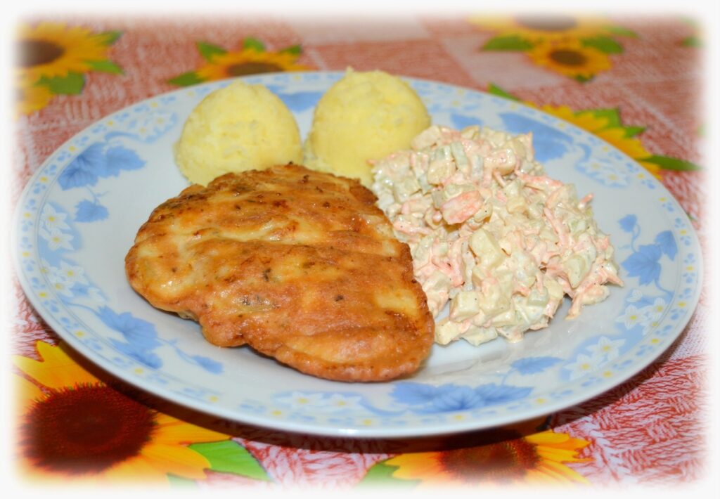 • 450-500 g piersi z kurczaka lub 5 sznycli drobiowych