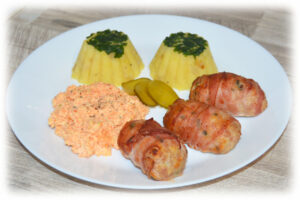 Bardzo lubię klasyczne kotlety z mięsa mielonego, ale czasem szukam sposobów, by je urozmaicić. Stąd wzięły się mielone pieczone w plastrach boczku🙂 Pomysł może się okazać szczególnie przydatny, gdy zjadą się goście i trzeba przygotować obiad dla większej ilości osób – w piekarniku przygotujesz jednocześnie więcej mielonych niż na patelni i to bez obaw, że zapełnisz dom zapachem smażenia lub spalonego tłuszczu.