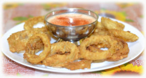 Złociste pierścienie cebulowe w chrupiącej panierce – to bardzo fajna i niedroga przekąska😀 My je zwykle robimy na przegryzkę do filmu, ale są też świetnym dodatkiem do piwa lub poczęstunkiem na imprezie. Jeżeli chcesz je przygotować na przyjście gości, pokrój cebulę, opanieruj i wstaw do lodówki, by czekały na usmażenie👍 Wcześniej robiliśmy panierkę a’la schabowy, maczając w roztrzepanym jajku i obtaczając w tartej bułce, jednak efekt końcowy nie powalał😕 Ta wersja z ciastem naleśnikowym jest o wiele lepsza – panierka tworzy wokół cebulowych pierścieni chrupiącą apetyczną skorupkę. Wychodzą pyszne! Polecam!😉