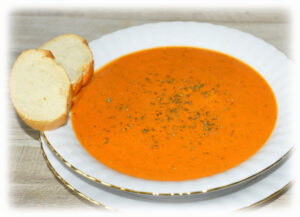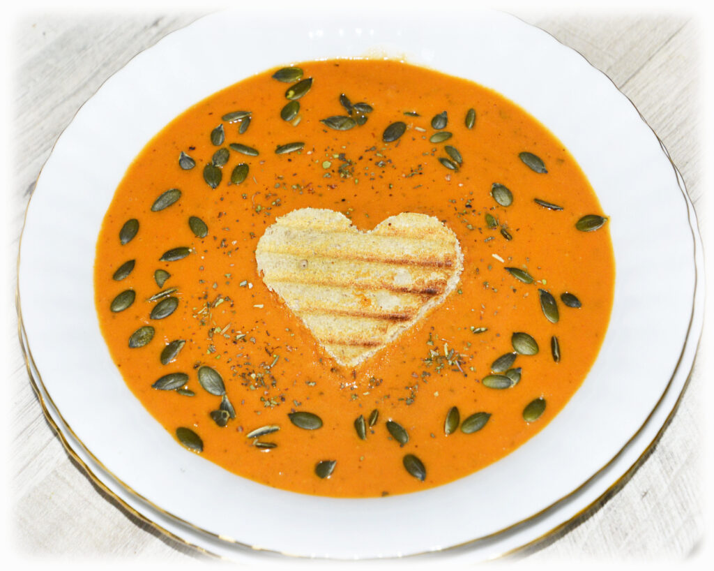 Bardzo prosty i łatwy pomysł na pyszną zupę pomidorową pachnącą ziołami😉 Jest doskonałą alternatywą tradycyjnej pomidorówki, którą można podać z makaronem lub z ryżem. Świetna na obiad, na kolację, na imprezy i przyjęcia, a także na romantyczne randkowe spotkania (np. z grzankami w kształcie serc lub wzorem serca narysowanym śmietanką).