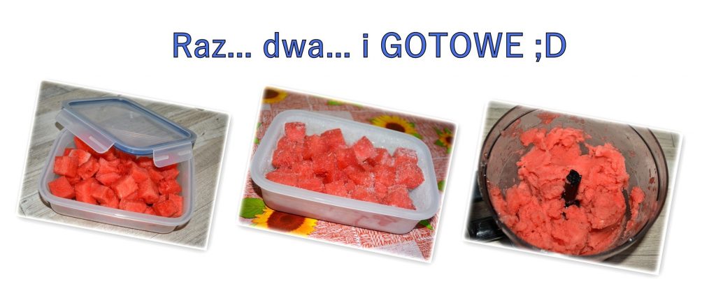 Zamrożonego arbuza możesz rozdrobnić nie tylko w malakserze, ale też w maszynce do mielenia lub w thermomixie.