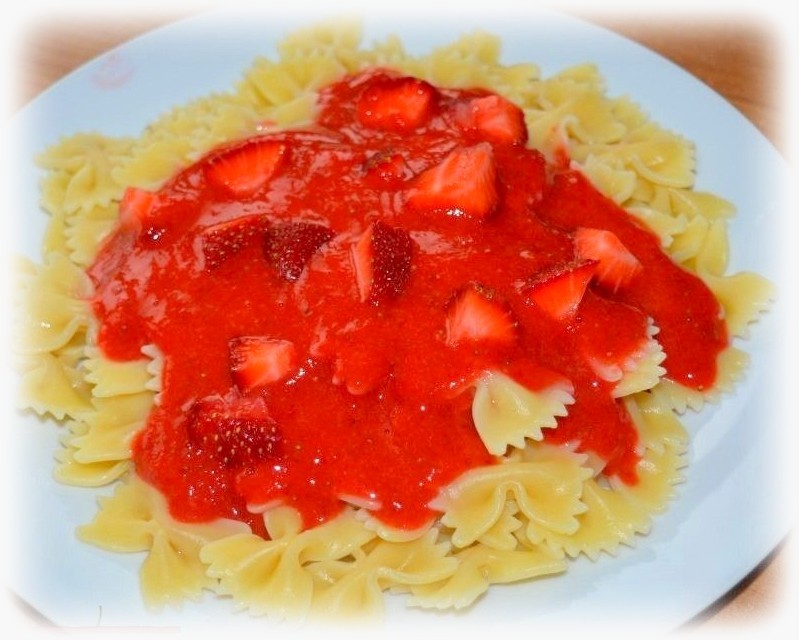 To danie kojarzy mi się z dzieciństwem. Obok mojego rodzinnego domu rosło poletko truskawek, z którego moja babcia zbierała owoce do makaronu😉 Szybkie, proste i bardzo lubiane przez dzieci – w sam raz na obiad lub kolację😉