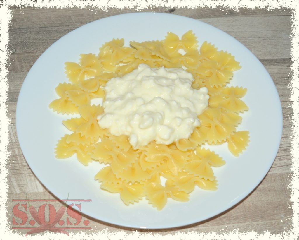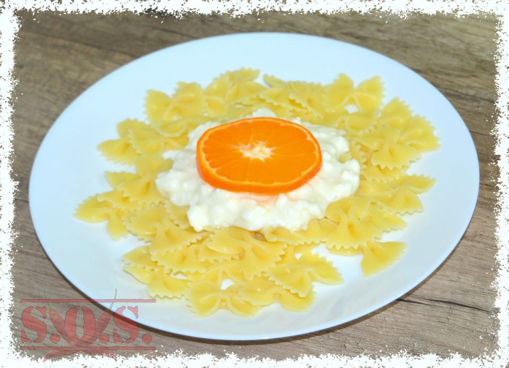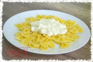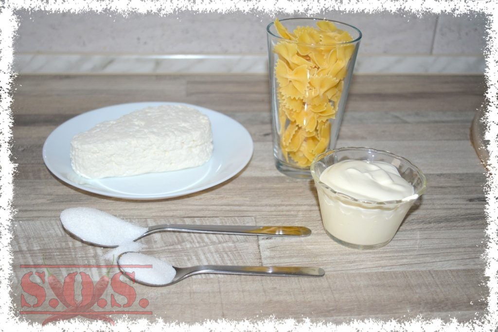 Makaron ugotuj (zgodnie z instrukcją na opakowaniu), a następnie przecedź w durszlaku. W osobnym naczyniu wymieszaj cukier, cukier waniliowy, śmietanę oraz pokruszony ser. Dodaj ugotowany makaron i całość wymieszaj lub słodki sos wyłóż na makaron w talerzach. Smacznego!🙂