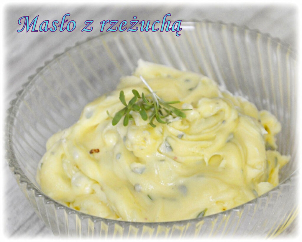 Masło pozostaw na kilka godzin w temperaturze pokojowej, by zmiękło. Dodaj 2 szczypty soli i utrzyj mikserem na puszysta masę. Dodaj lekko przesiekaną rzeżuchę – wymieszaj. Przełóż do miseczki, foremki lub ułóż na folii spożywczej i zawiń formując wałek (można je później podać w plasterkach). Wstaw do lodówki, by stwardniało.