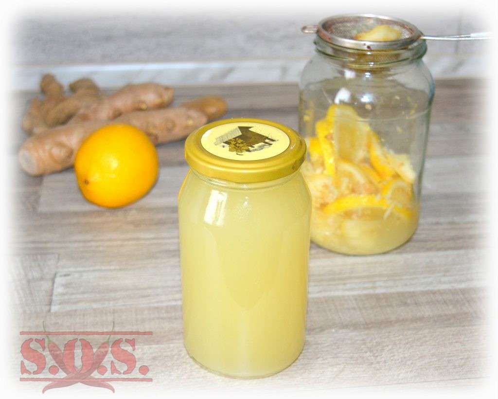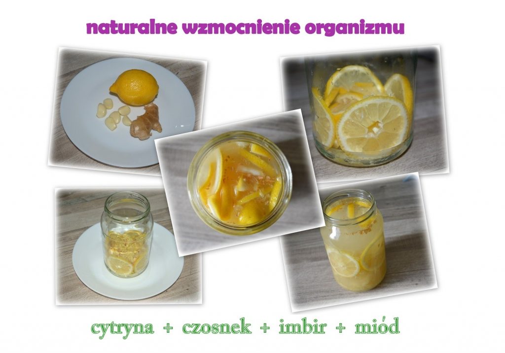 Do słoika włóż czosnek przepuszczony przez praskę, cytrynę (umytą i sparzoną wrzątkiem) pokrojoną w pół plasterki oraz imbir (umyty) starty na tarce o dużych oczkach. Całość polej miodem i odstaw na noc. Następnie uzupełnij słoik dolewając ciepłą wodę. Odstaw na 24 godziny, by wszystkie składniki się „przegryzły”. Odcedź i przelej do szczelnie zamykanego słoika lub butelki. Przechowuj w lodówce.
