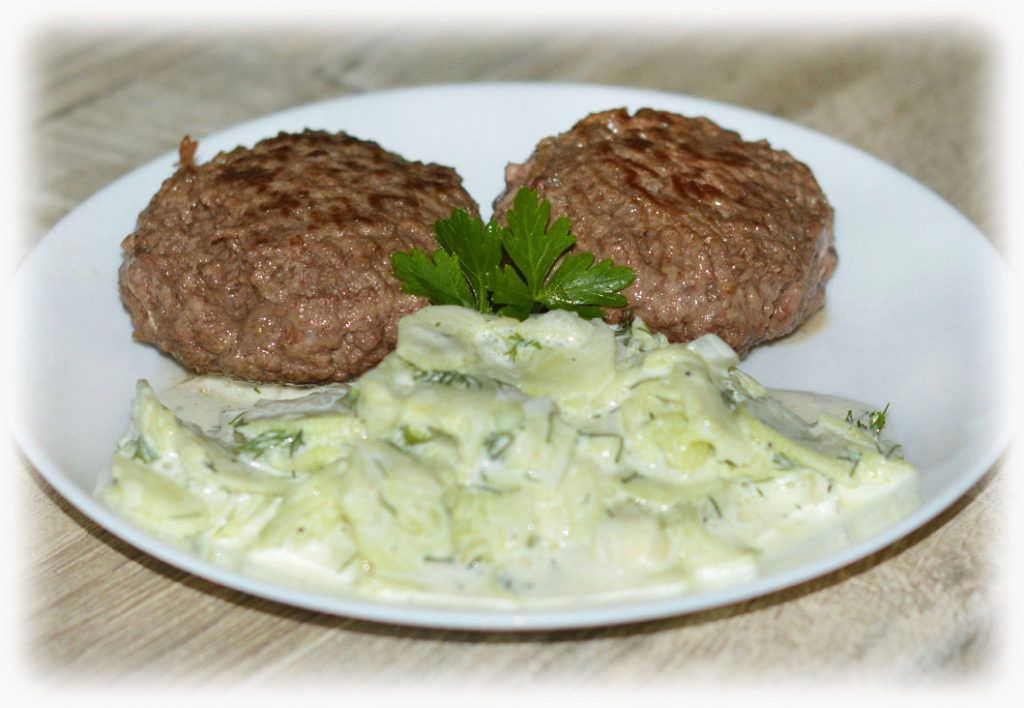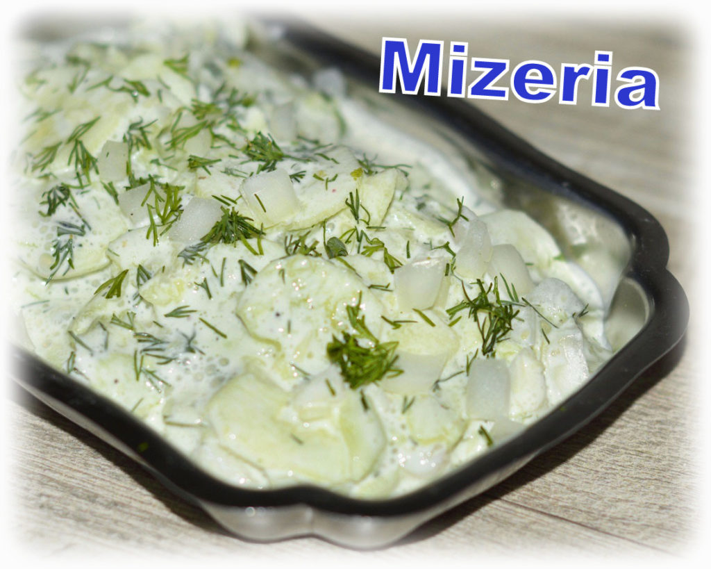 Mizeria to klasyka polskiej kuchni. Najczęściej gości na naszych stołach w sezonie wiosenno-letnim. Jest idealna do obiadu lub jako dodatek do mięska z grilla, chociaż… zdarza się, że wcinam ją ot tak z pieczywkiem🙂 Poniższy przepis zawiera dodatek koperku, ale jeśli nie masz lub nie lubisz, zastąp go cebulą, szczypiorkiem, świeżą natką pietruszki lub listkami mięty.