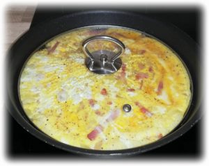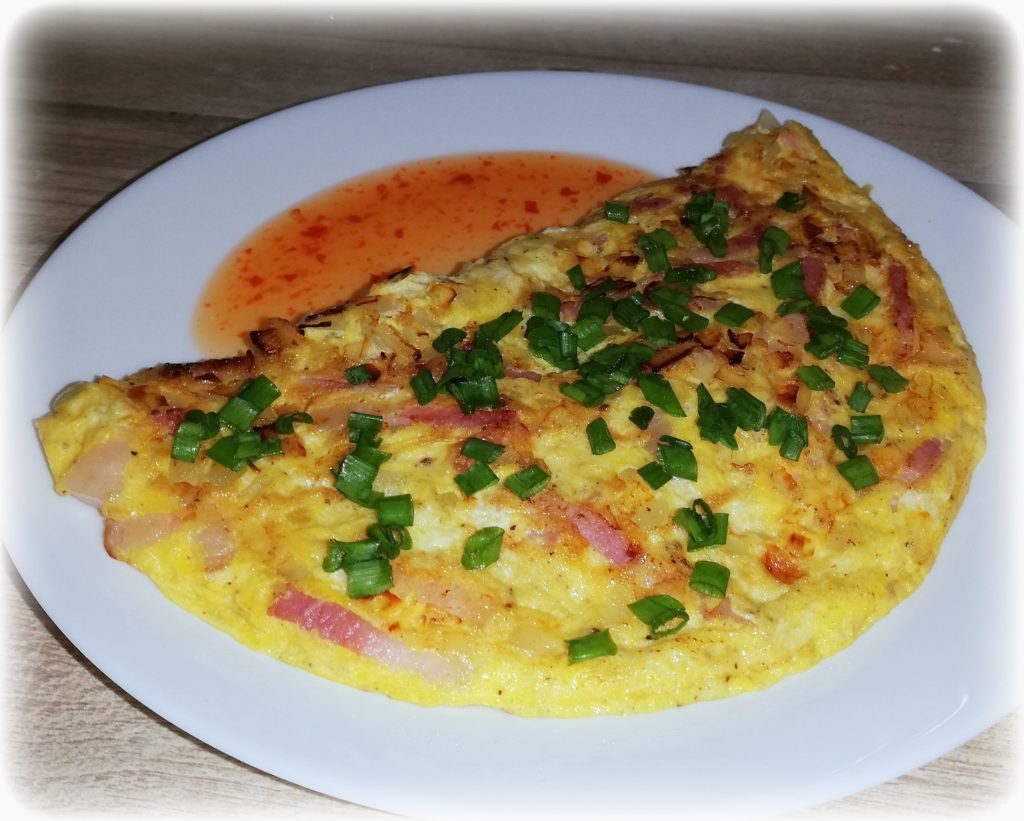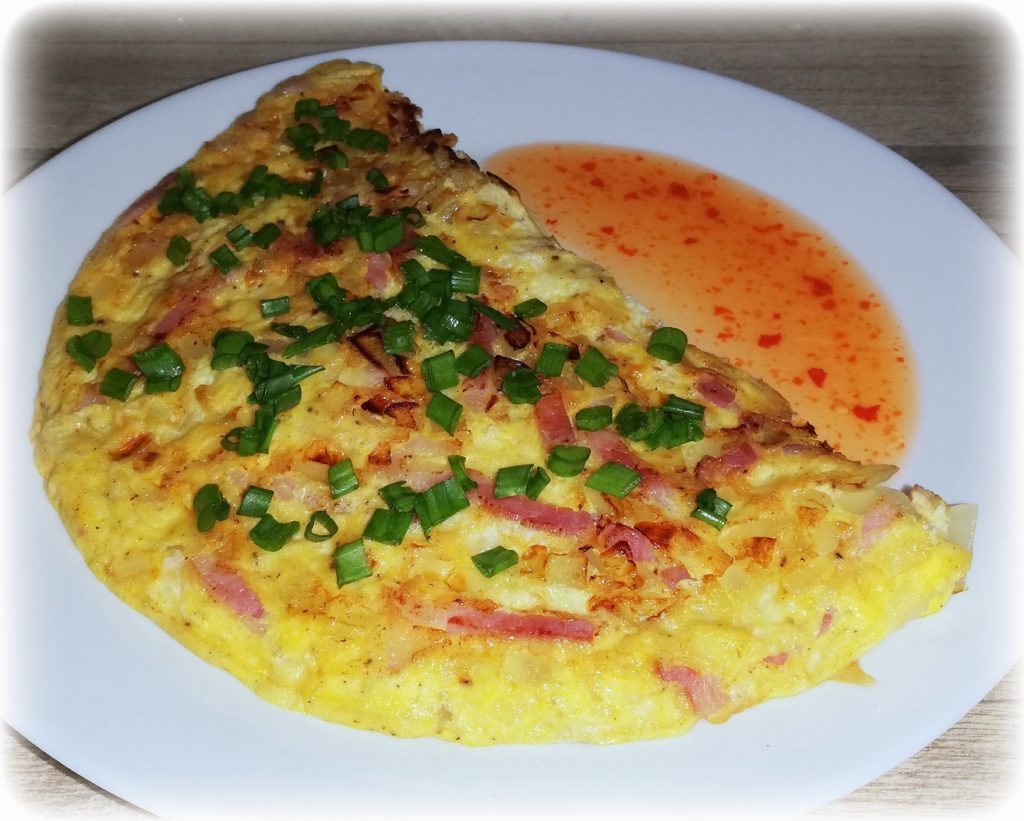 Omlet, czyli placek ze smażonych jajek😊 Ten poniżej jest najprostszy z możliwych. Możesz usmażyć placek bez dodatków, ja jednak lubię wrzucić coś ekstra, by urozmaicić danie. Zwykle jest to cebula i  boczek (lub inna wędlina). Można użyć też pieczarek, świeżej papryki, szpinaku bądź innych ulubionych dodatków.