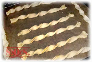 Jajko roztrzep widelcem w miseczce. Arkusz ciasta rozwiń i posmaruj całą powierzchnię jajkiem. Dokładnie na połowie ciasta rozłóż starty na drobnych oczkach ser (lekko przyciśnij dłonią). Posyp solą i papryką, a później złóż wpół. Dociśnij dłonią. Pokrój w paski o szerokości ok. 1,5 cm. Z każdego paska zrób świderek, łapiąc za oba końce i skręcając w przeciwne strony. Ułóż na blaszce wyłożonej papierem do pieczenia. Piecz ok. 15 minut w temp. 200 stopni.