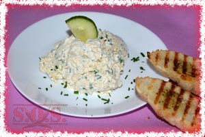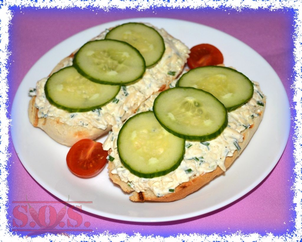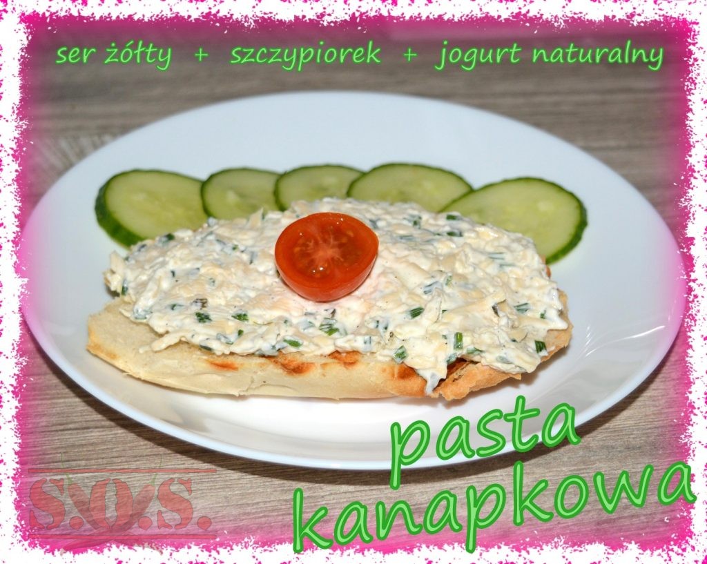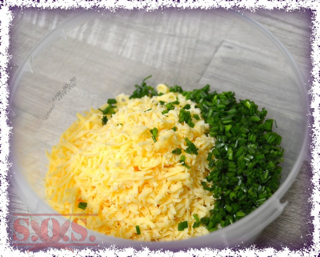 Ser żółty zetrzyj na tarce o drobnych oczkach. Dodaj posiekany szczypiorek, jogurt naturalny oraz przyprawy. Całość dobrze wymieszaj.