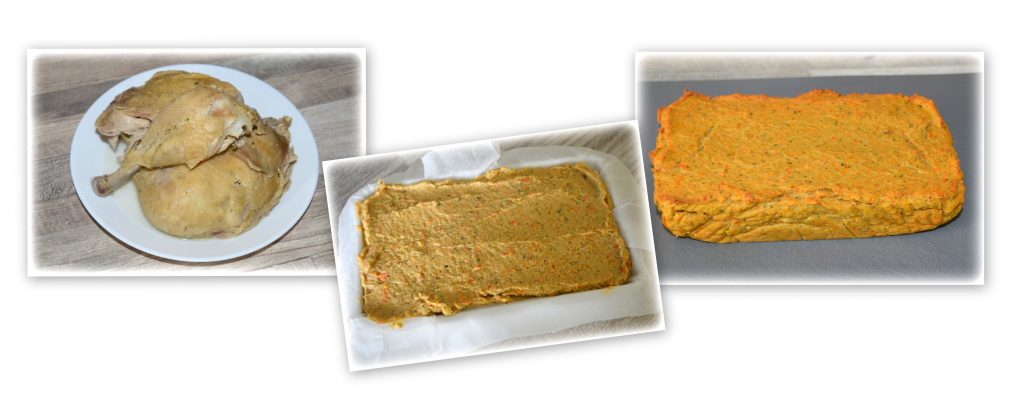 Warzywa z rosołu przekrój na mniejsze części, mięso oddziel od kości, bułkę namocz w wodzie i odciśnij, cebulę przekrój na połówki lub ćwiartki – zmiel je w maszynce do mielenia lub rozdrobnij w malakserze. Do powstałej masy wbij jajka i dobrze dopraw sosem sojowym (lub solą i pieprzem), by smak był wyrazisty. Następnie przełóż do wyłożonego papierem naczynia żaroodpornego lub formy keksowej. Piecz ok. 50 minut w temp. 180 stopni.