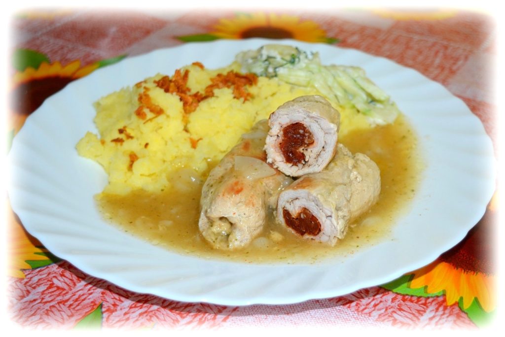 Jeśli nie lubisz suszonych pomidorów, do środka możesz włożyć np. suszoną śliwkę, fasolkę szparagową, pieczarki, paprykę, szpinak. Odradzam nadziewanie żółtym serem, ponieważ jest ryzyko, że się rozpuści i wypłynie w czasie gotowania.