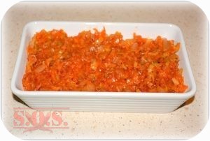 Filety pokrój na mniejsze kawałki, obsyp solą i pieprzem (lekko wetrzyj przyprawy dłońmi), obtocz w mące i usmaż na złoty kolor z obu stron. Na patelni rozgrzej olej i zeszklij cebulę pokrój w piórka. Wrzuć marchewkę i seler starte na tarce o dużych oczkach – lekko je obsmaż. Dodaj 1/2 szkl. wody oraz koncentrat pomidorowy – duś jeszcze kilka minut pod przykryciem. Dopraw solą, pieprzem i szczyptą cukru. Kawałki usmażonej ryby ułóż na dużym talerzu lub półmisku, a na wierzchu rozłóż duszone warzywa. Odstaw w chłodne miejsce na minimum godzinę.