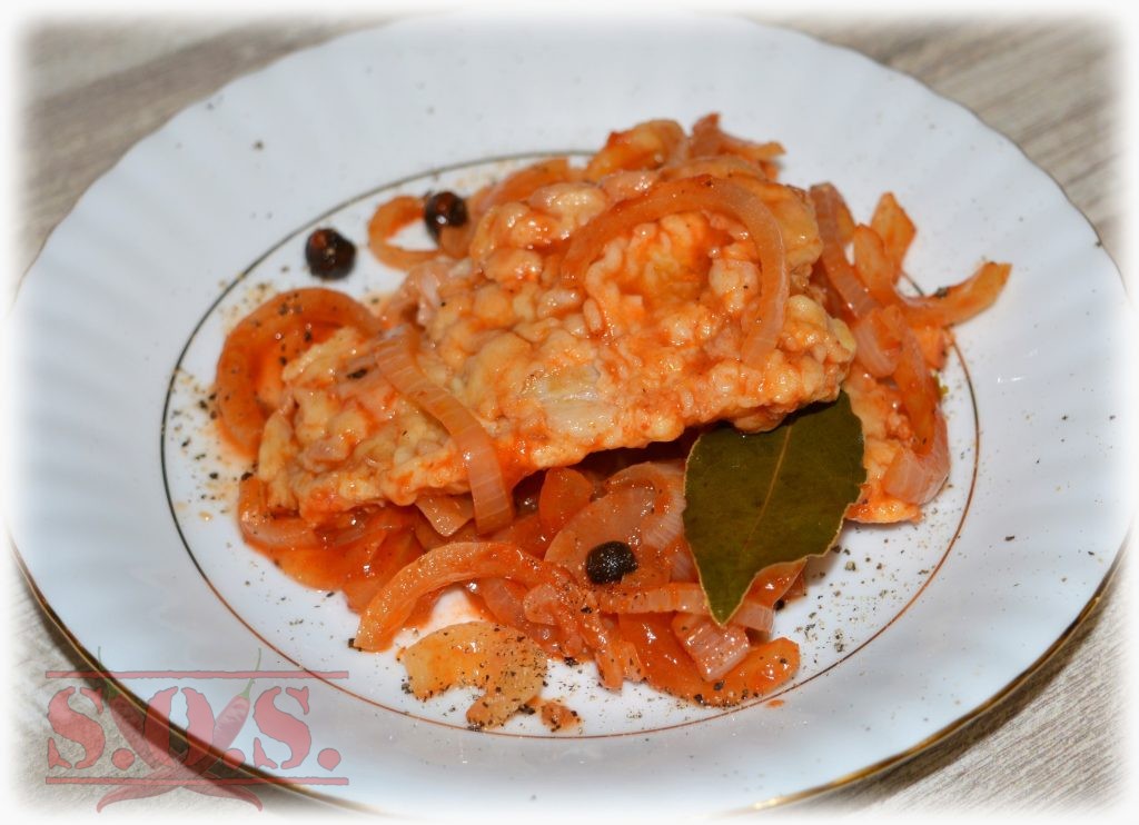 Przed smażeniem nie trzeba solić ryby, ponieważ później i tak przejdzie smakiem zalewy pomidorowej.