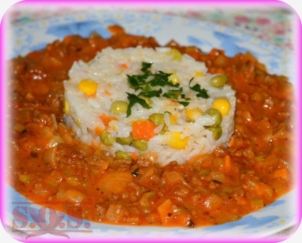 Ryż ugotuj według instrukcji na opakowaniu, następnie odsącz z wody i odłóż na chwilę do wystudzenia. W głębszej patelni rozgrzej olej, wrzuć marchewkę pokrojoną w kostkę. Smaż na średnim ogniu przez 5 minut, po czym wsyp posiekaną cebulkę i duś pod przykryciem do miękkości marchewki. Dodaj groszek i kukurydzę, a po chwili również ostudzony ryż. Całość przypraw do smaku i dobrze wymieszaj.