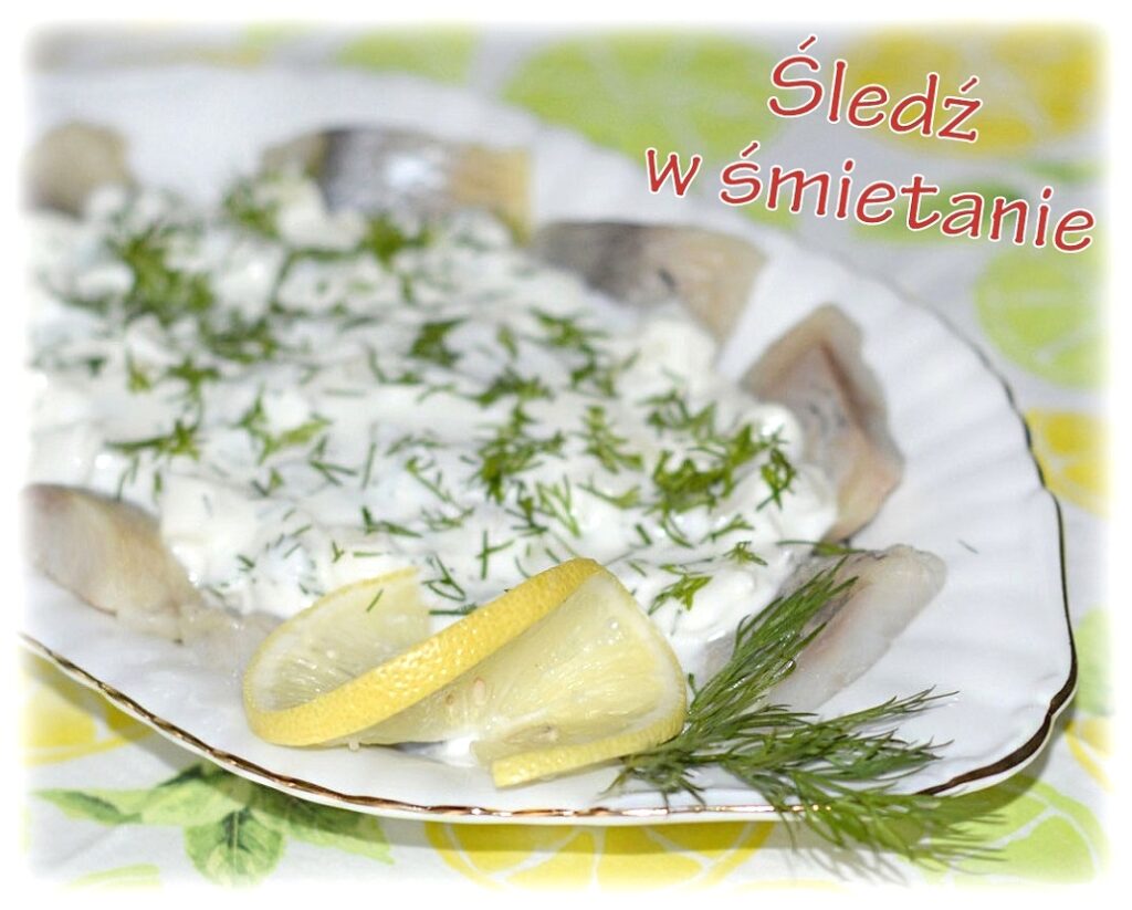 Jabłka obierz, a z cebuli usuń łupinę – pokrój je w drobną kosteczkę. Przełóż je do miski. Dodaj posiekany koperek, kwaśną śmietanę i przyprawy. Posmakuj i jeśli chcesz, dla zaostrzenia smaku dodaj odrobinę octu lub soku z cytryny. Śledzie pokrój na mniejsze kawałki. Ułóż je na talerzu i przykryj śmietanową pierzynką lub wymieszaj z sosem i podawaj w miseczce. Przed podaniem warto je odstawić na kilka godzin, by nabrały lepszego smaku (przegryzły się).
