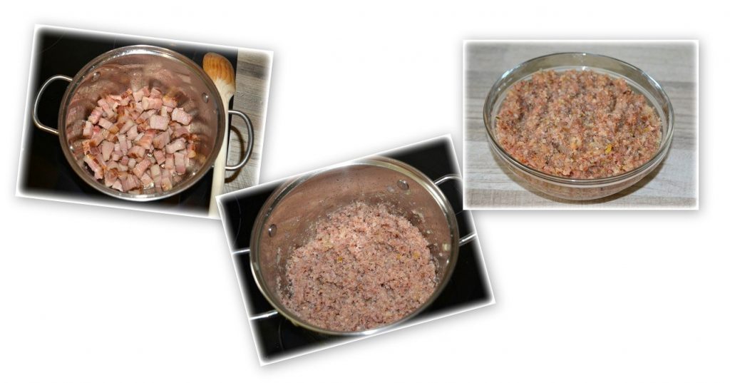 Boczek pokrój na mniejsze części i zmiel w maszynce lub rozdrobnij w malakserze. Przełóż na patelnię (lub do rondla z grubym dnem) i top na niedużym ogniu. Mieszaj co chwilę, by się mięso nie przypaliło. Gdy tłuszcz już się wytopi, dodaj drobno posiekaną cebulę i smaż, aż zmięknie. Dodaj majeranek oraz szczyptę soli, następnie zestaw z ognia. Odstaw na kilka chwil do przestygnięcia. Przełóż do słoików lub miseczek. Pozostaw do zastygnięcia. Przechowuj w lodówce.