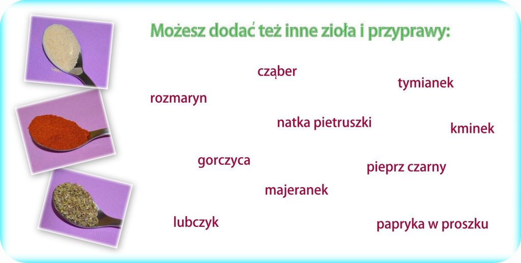 Wszystkie składniki wrzuć do malaksera i zmiksuj na drobny proszek. Gotową przyprawę przechowuj w szczelnie zamkniętym pojemniku (np. słoiczku), ponieważ sól wchłania wilgoć.