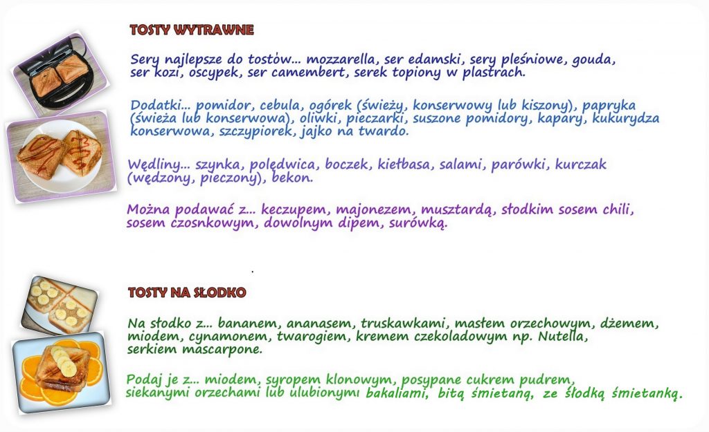W ich przygotowaniu nie ma żadnej wielkiej filozofii, ale jeśli znudził Ci się tradycyjny sandwicz z szynką i serem, poniżej podsuwam też inne opcje… na słono i na słodko🙂 Pamiętaj! Tosty nie muszą być nudne! Wystarczy odrobina wyobraźni i możemy stworzyć wyjątkowe śniadanie, przekąskę lub kolację🙂